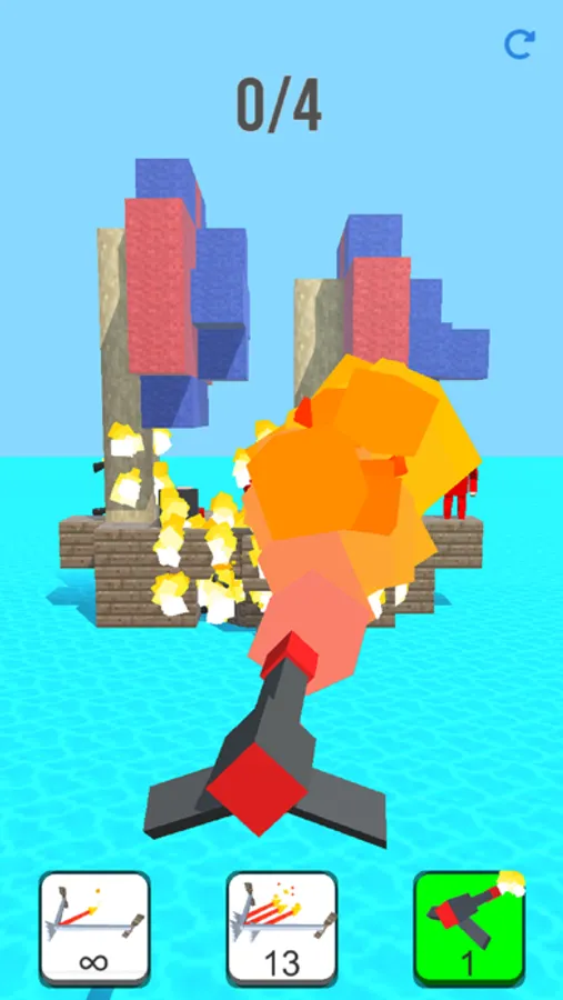 The gameplay is super easy. Tap to aim, fire arrows and watch the flame dancing on the enemies’ shelters! Your goal is to knock ‘em all down!