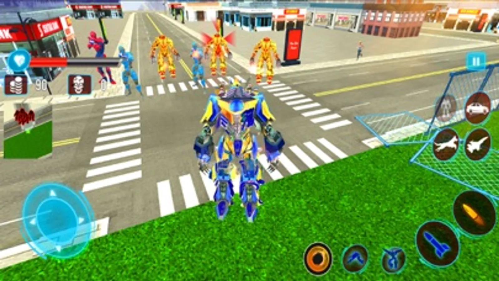 Are you ready for futuristic transform wars in transforming robot games with police dog rescue cities and eradicating criminal activities and evil robots fighting in cop games and police games? You will enjoy smooth controls over the robot while playing. You have played multiple Robot Police Dog games but real robot car transforms will give you real experience when you transform a robot into a flying jet, dog, and car in Robot fighting games 3d 2021.
