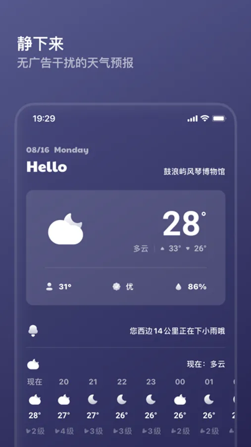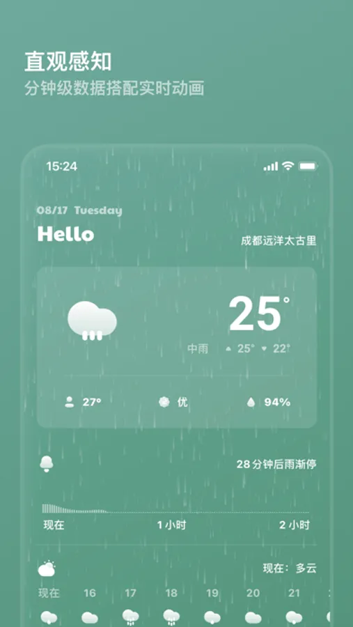 - 实时动画:遇到雨雪雾等特殊气象时,实时渲染的动画帮助你更加直观地感受当前天气状况。