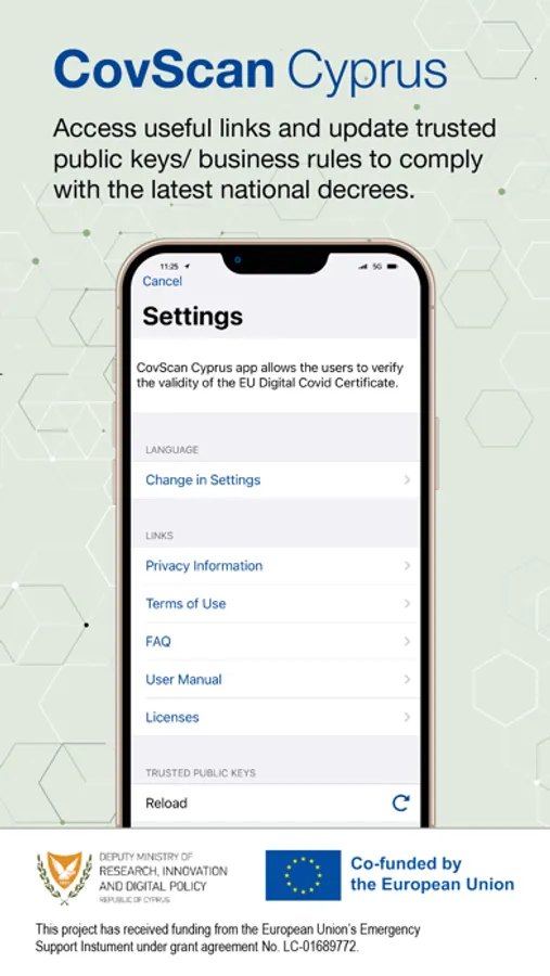 The official application of the Cypriot Government for verifying the validity of an EU Digital COVID Certificate (EUDCC) for domestic usage.