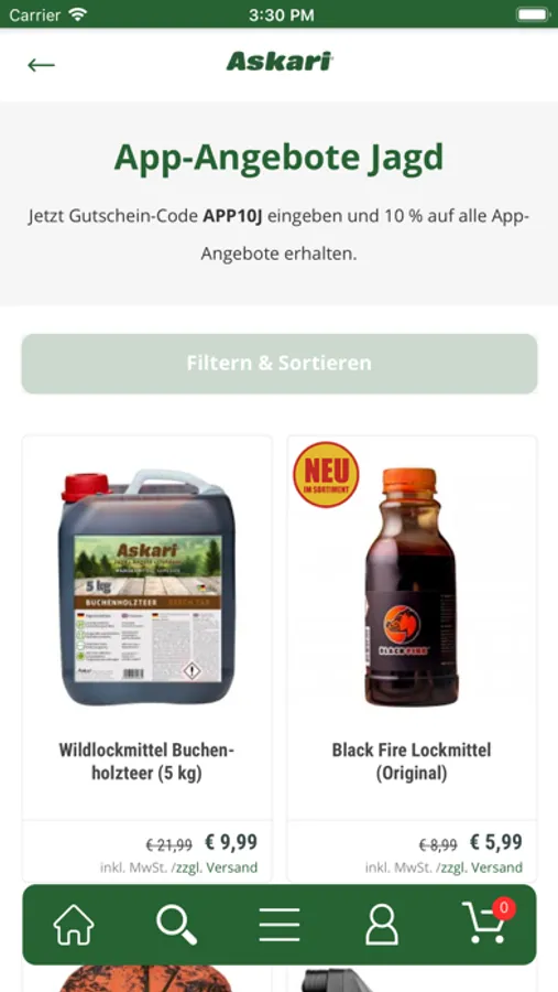 Unsere kostenlose ASKARI Jagd App bietet Ihnen Ihr persönliches Shoppingerlebnis auf der Couch oder direkt im Revier. Stöbern Sie schnell und komfortabel durch unsere digitale Jagdwelt mit über 40.000 Artikeln, verwalten Sie Ihre Kundendaten, Bestellungen und Anfragen und profitieren Sie als App-Nutzer nicht zuletzt von vielen Vorteilen wie zum Beispiel App-exklusiven Angeboten und versandkostenfreier Lieferung schon ab 50,- €.