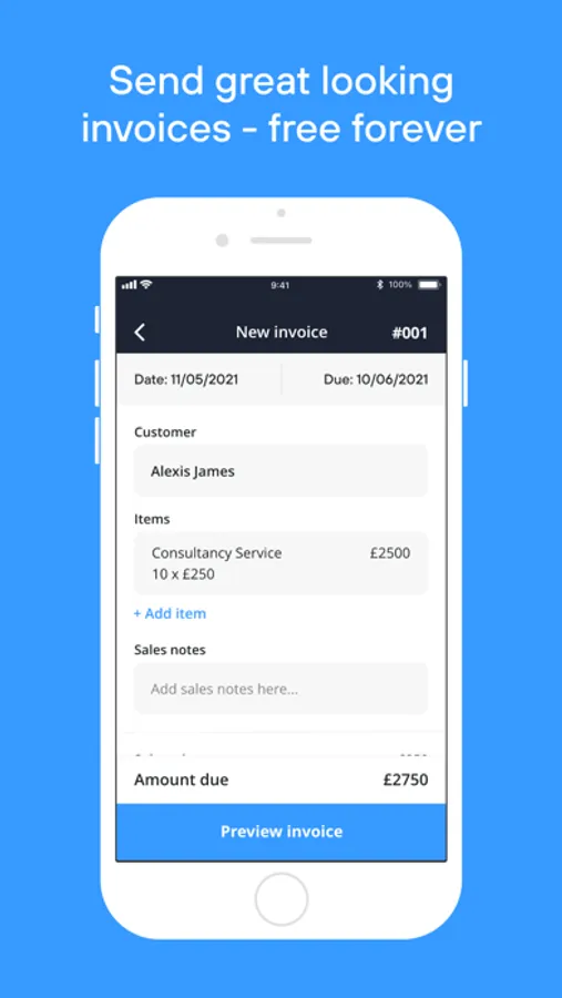 Send unlimited quotes and invoices to as many customers as you like. It will auto prompt you the details next time to save you from keying in for every invoice. Customise and make the invoice your own - choose your template, upload your logo and pick your brand colours. Make an impression on your customers with bespoke professional invoices!