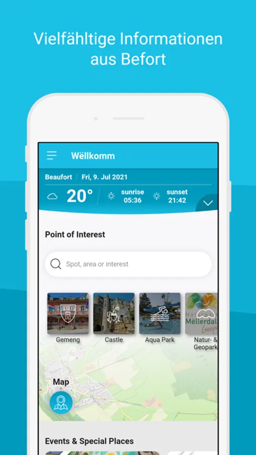 Die App richtet sich sowohl an die Einwohner als auch die Besucher von Befort, Dillingen und Grundhof. Die Dienste der Gemeindeverwaltung lassen sich in wenigen Klicks schnell erreichen genauso wie die Beeforter Schlösser, der Natur- und Geopark, der Generationsgarten sowie das Schwimmbad und die Eisbahn.