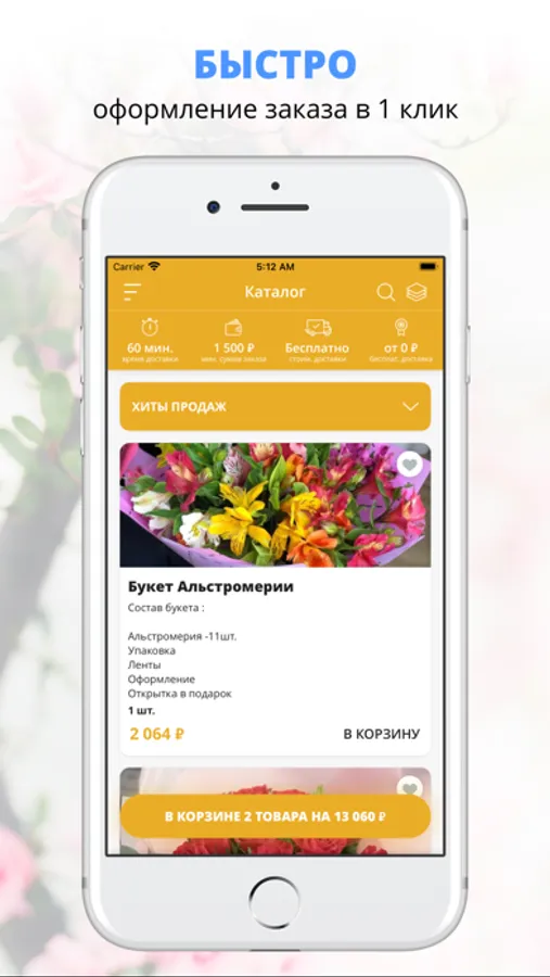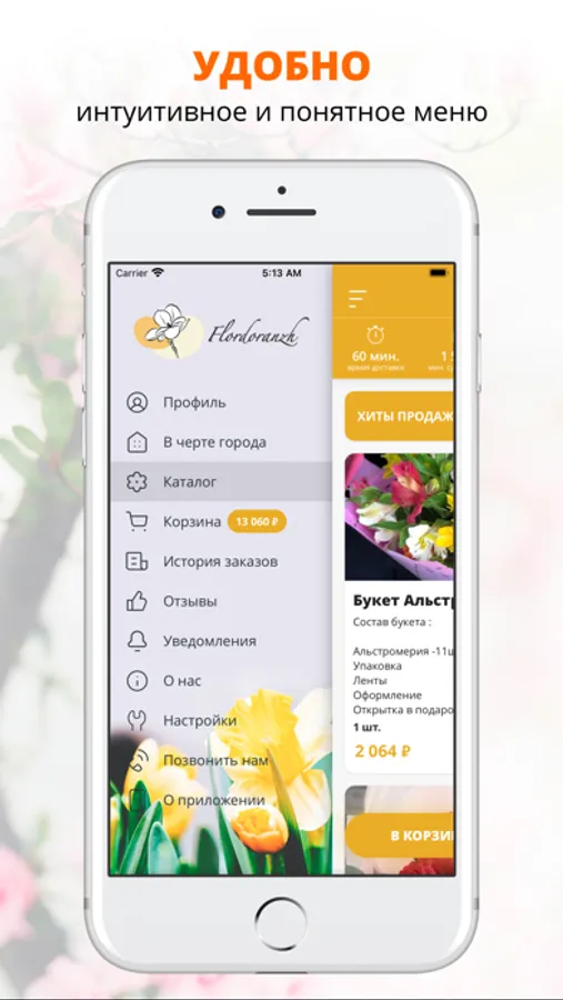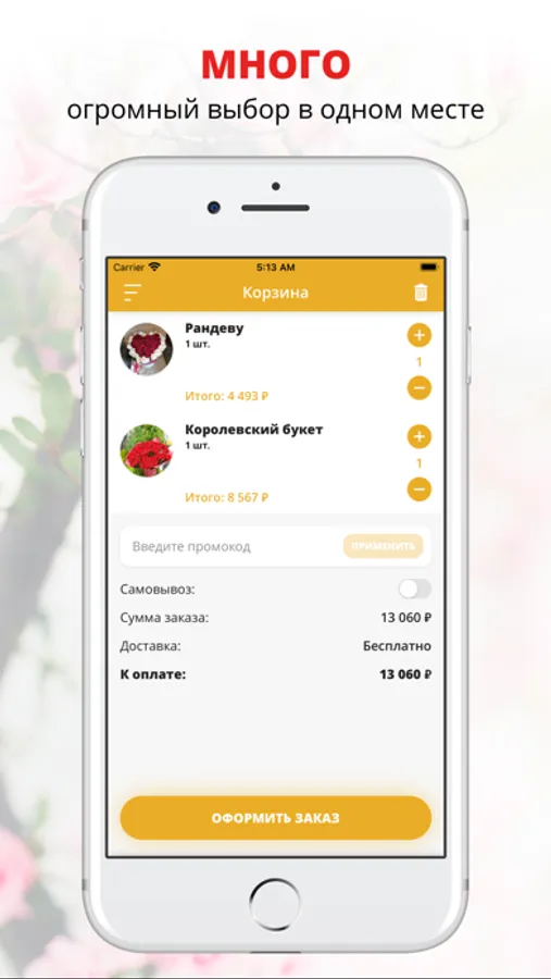 Заказать доставку цветов Вы можете с помощью мобильного приложения.