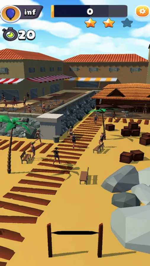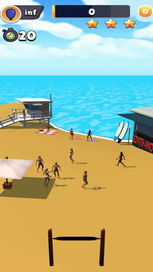 Balloon Beach takes the concept of a real world three person water balloon launcher and places it in the palm of your hand. Launch water balloons at people and other objects in 3D digital worlds. Start off at the Public Beach and launch balloons towards unsuspecting beach goers. Work your way up to new places around the islands. Unlock new targets, features, power ups, and levels by earning stars. Earn in game coins to buy colorful new skins.