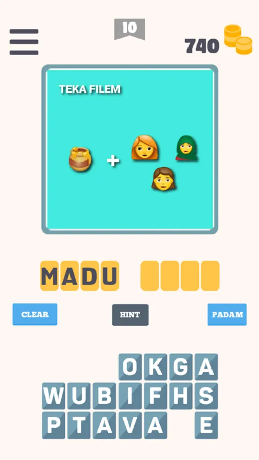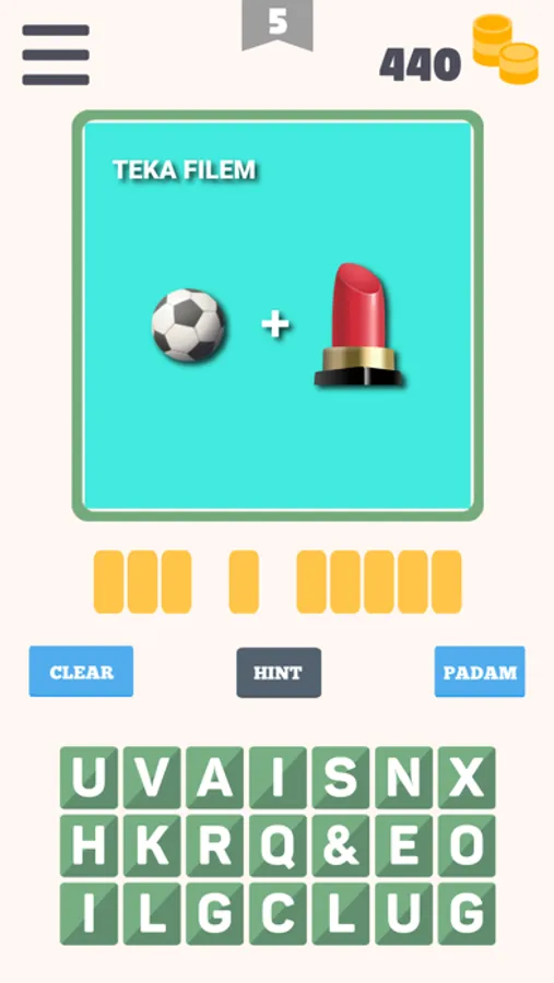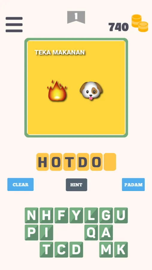 2- Jika anda tidak tahu jawapan, terdapat 3 button hint. Hint pertama, berikan satu huruf. Hint Kedua, Buang beberapa huruf. Hint Ketiga, berikan jawapan penuh.