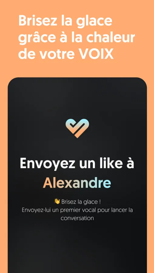 Likez les personnes qui vous attirent. Si l’intérêt est réciproque, la conversation commence. Après 20 messages vocaux, UP Date vous invite à échanger vos photos pour confirmer ou non votre feeling. La suite, c’est vous qui l’écrivez !