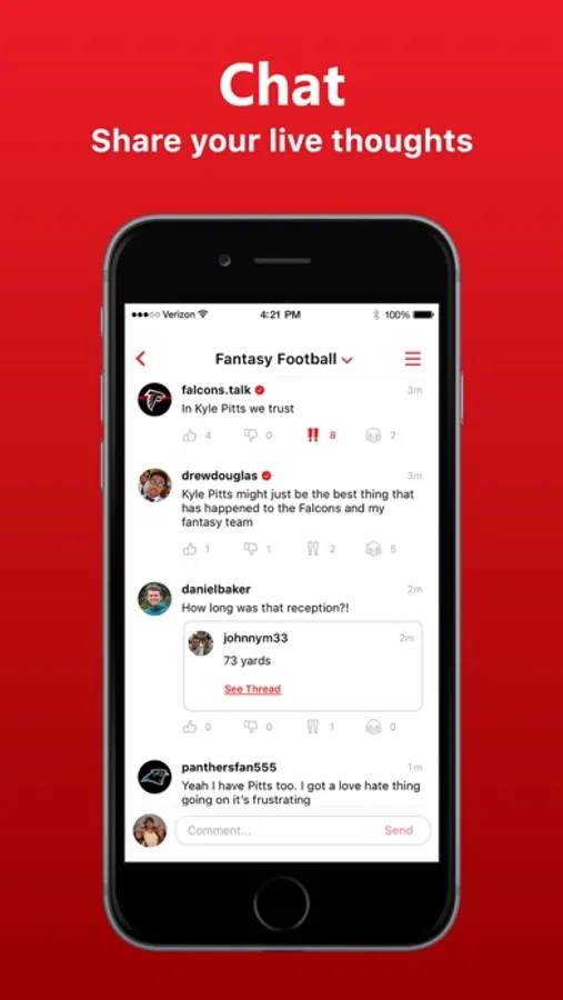 With many different chat rooms for each event, we make it easy to find the right conversation for you. Share your thoughts, react to others, or just see what everyone else is saying. No matter how you choose to engage, with Stoke you will never miss the conversation.
