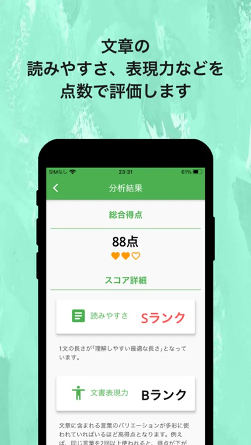 文章の読みやすさ、表現力、語彙の難しさ、感情分析なども可能なため、