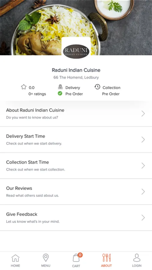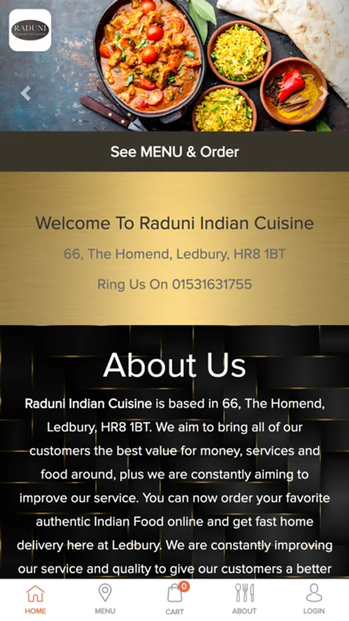 We're also available for ordering on https://raduniledbury.com/storemenu and also on https://kuick.com/order/raduni-indian-cuisine