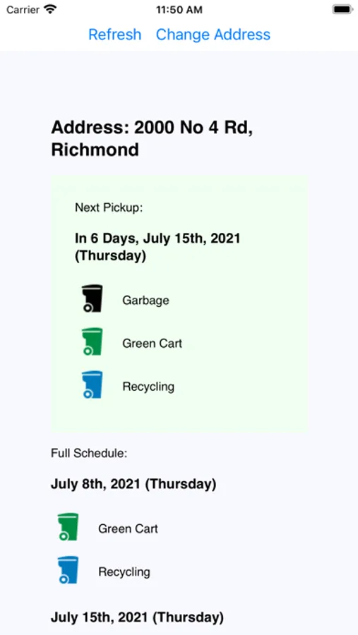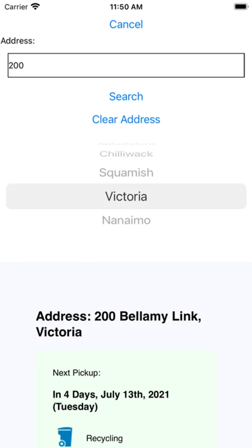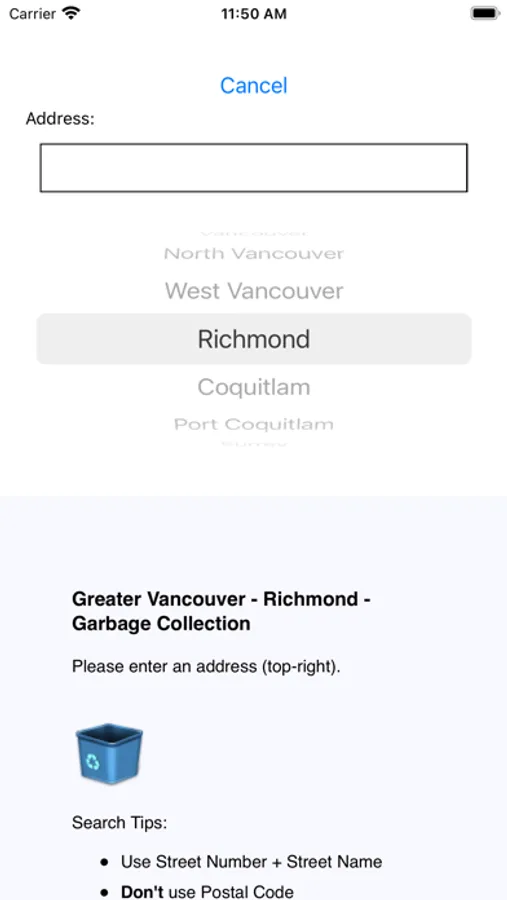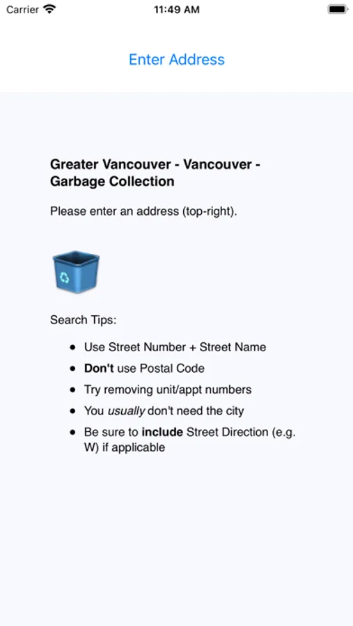 Note that we recieve the address you search in order to look up the garbage schedule.