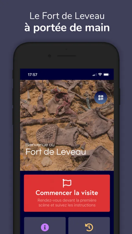 Entièrement gratuite, l’application mobile du musée du fort de Leveau peut être utilisée sans connexion internet. Installez-la chez vous pour obtenir les informations pratiques. Une fois dans le musée, elle sera votre guide dans le fort grâce aux QR codes positionnés dans le parcours de visite. Scannez-les grâce à l’application du musée du fort de Leveau pour obtenir sur places des informations sur les lieux reconstitués du fort (chambrée, cuisine, magasin aux vivres), les objets et le matériel.