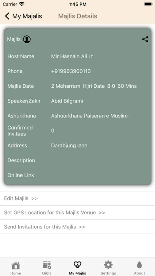 The users can also list their majlis and use the App to invite users to their Majlis.