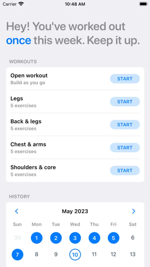 Workout Calendar: Stay on top of your fitness routine with Reps' workout calendar. Easily view and track your past workouts, giving you insight into your exercise frequency and consistency throughout the month.