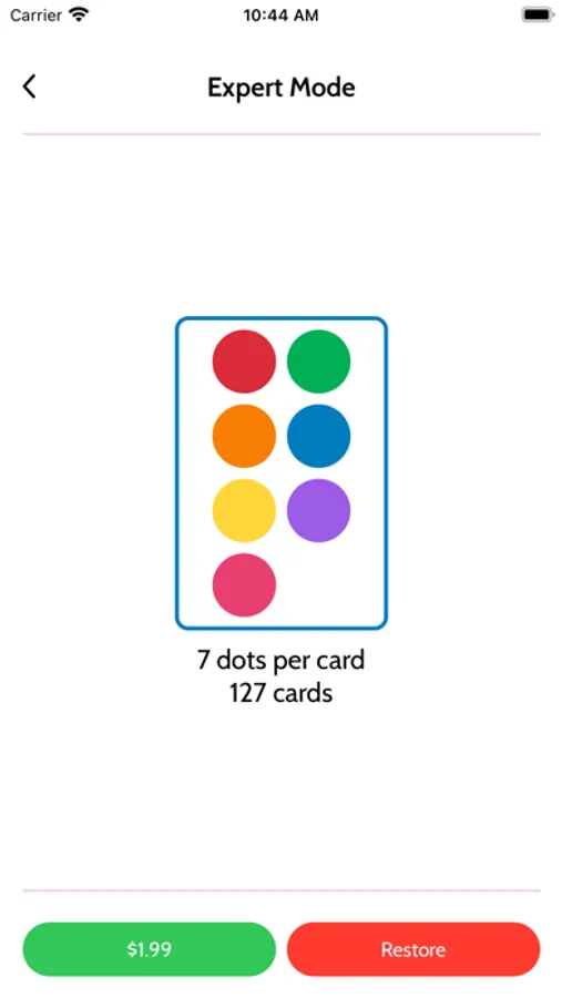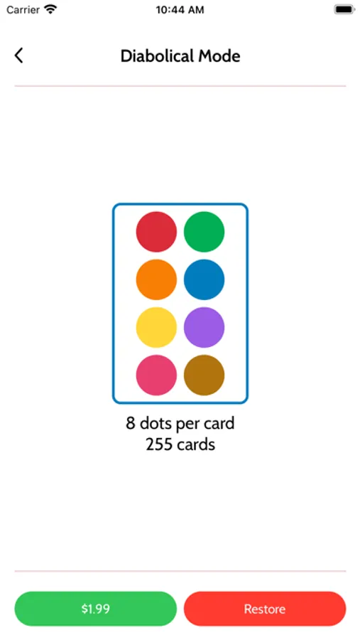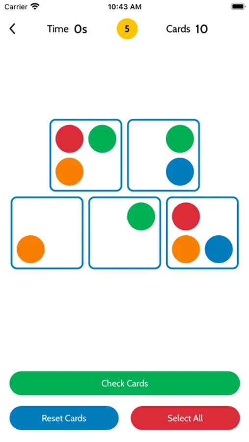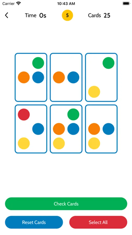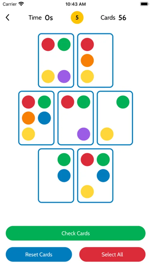 A colorful speed game of spotting the dots to identify the correct set of cards from every hand that is dealt. Play on Easy, Medium, and Hard difficulty levels. Unlock Expert and Diabolical modes if you dare!