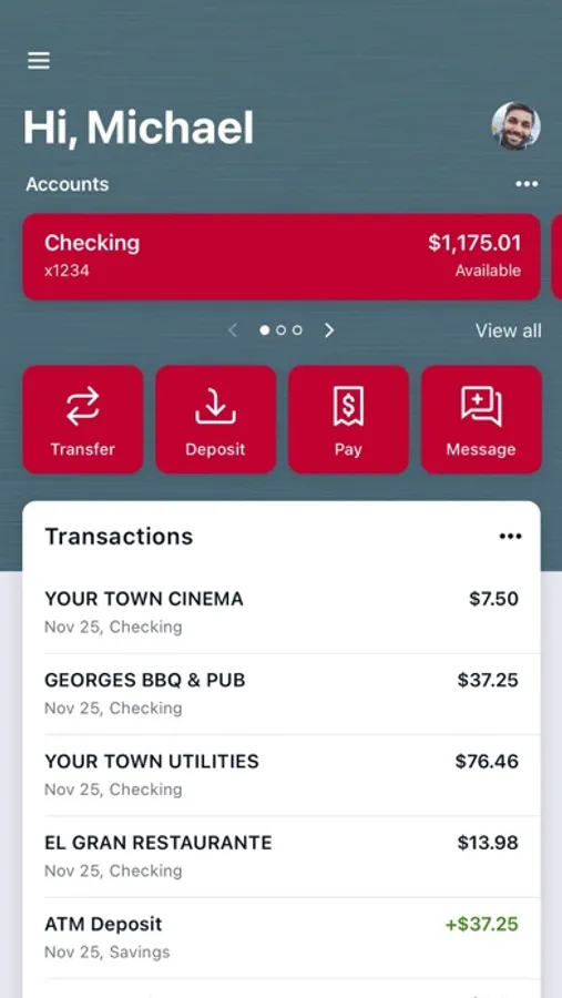 • Deposit checks in a snap by taking a picture of the front and back.