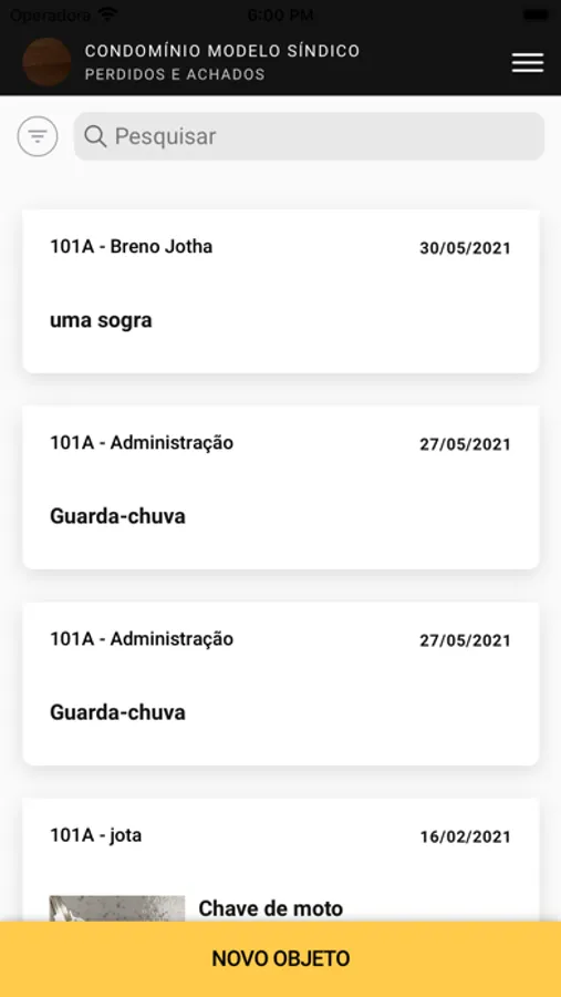 Ocorrências aberta por um morador é visualizada somente pelo próprio morador e pelo administrador. Outros moradores não acessam as ocorrências abertas.