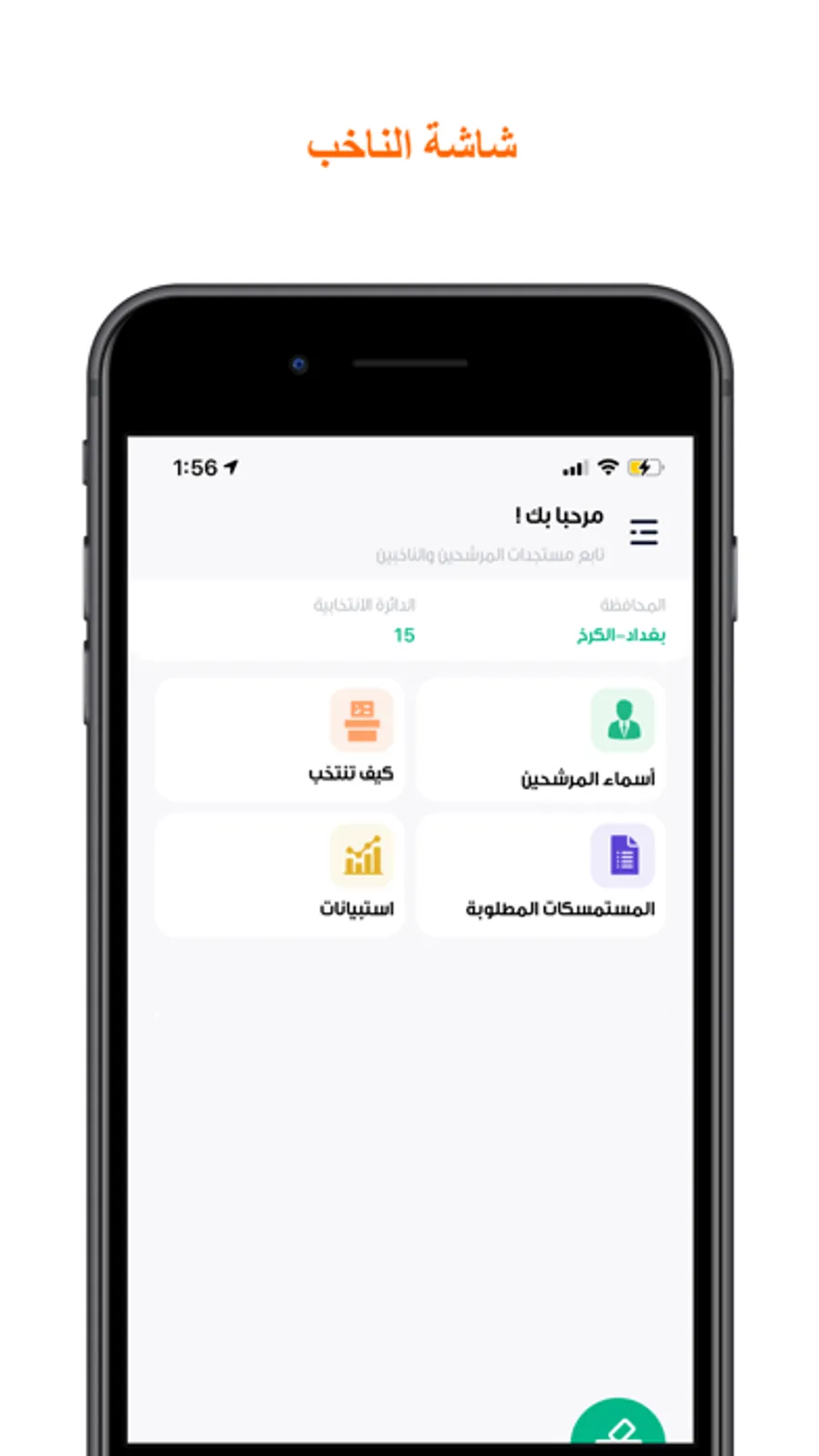 * توفير خدمة التصويت التجريبي حيث يتم إشعارالمستخدم بوجود تصويت تجريبي يستطيع المستخدم من خلاله ان يصوت لمرشحه المفضل ضمن محافظته ودائرته الانتخابية وارسال صوته الى فريق أدارة التطبيق.