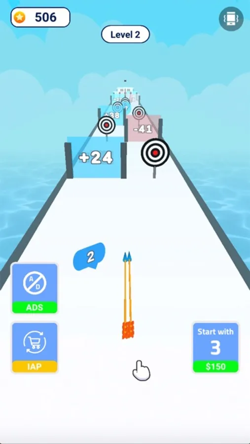 Choose the best gate, pass through it, to collect as many arrows as possible.