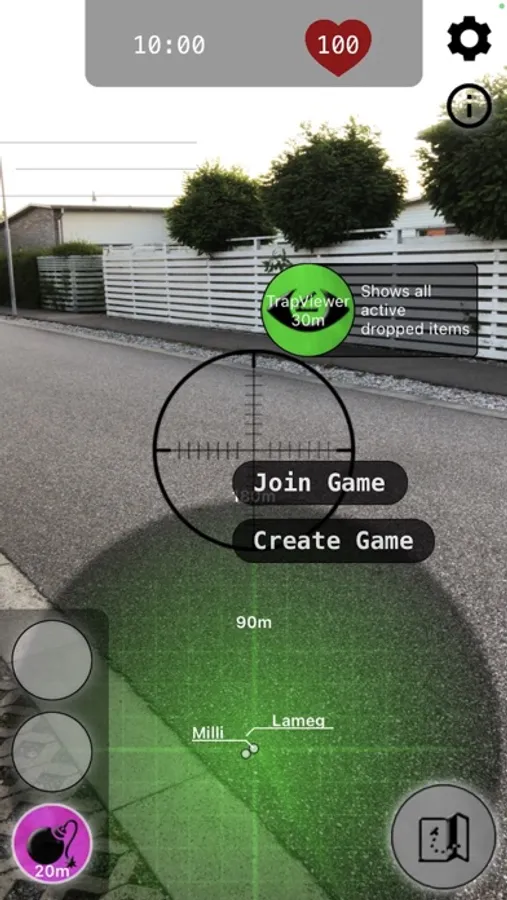 PxlTag is an outdoor AR game. Watch the radar and collect items in the real world surroundings to stop your opponents. Last player standing wins!