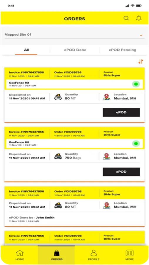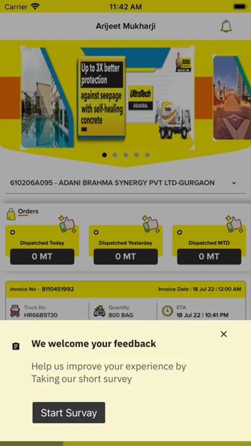 Proof of delivery: Customers can give electronic proof of delivery upon receiving the material which simplifies the flow of information between customers and UltraTech
