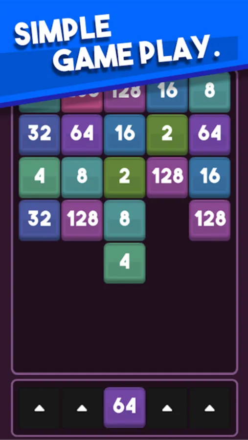 Tap the screen within the border area to trigger the number block forward and match two of the same block and number together. Add as many numbers together and try not to have the blocks touch the ground or it will be game over.