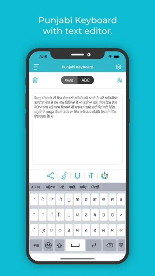 • Once you start typing, you can underline, colour or change the font of any letter to emphasise or de-emphasise it in this best Punjabi Keyboard And Translator for iOS.