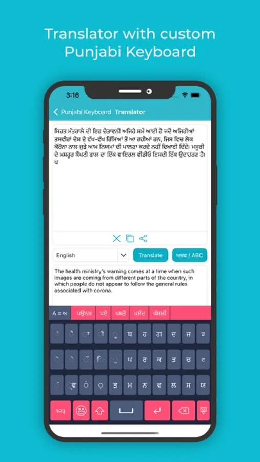 • Once you’re done with your writing in Punjabi, you can use the translator feature in the best Punjabi Keyboard And Translator for iOS to convert the text into any other language as well.