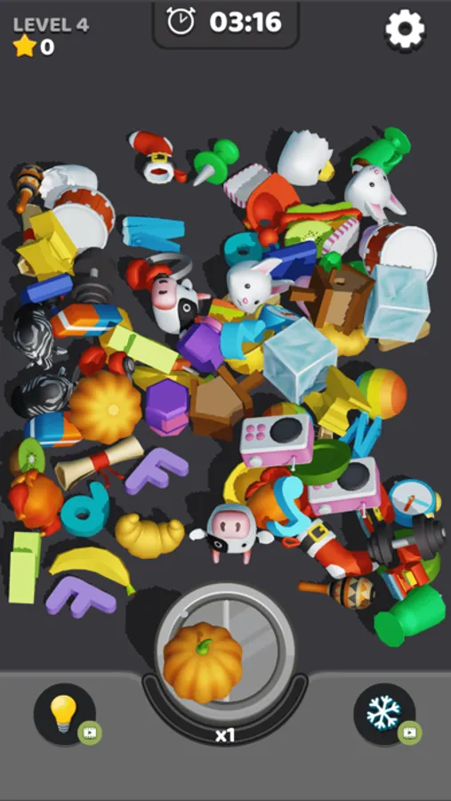 Pair two identical objects to eliminate, eliminate all objects in the scene within the specified time even if the level is completed, complete the fixed level can get more new items!