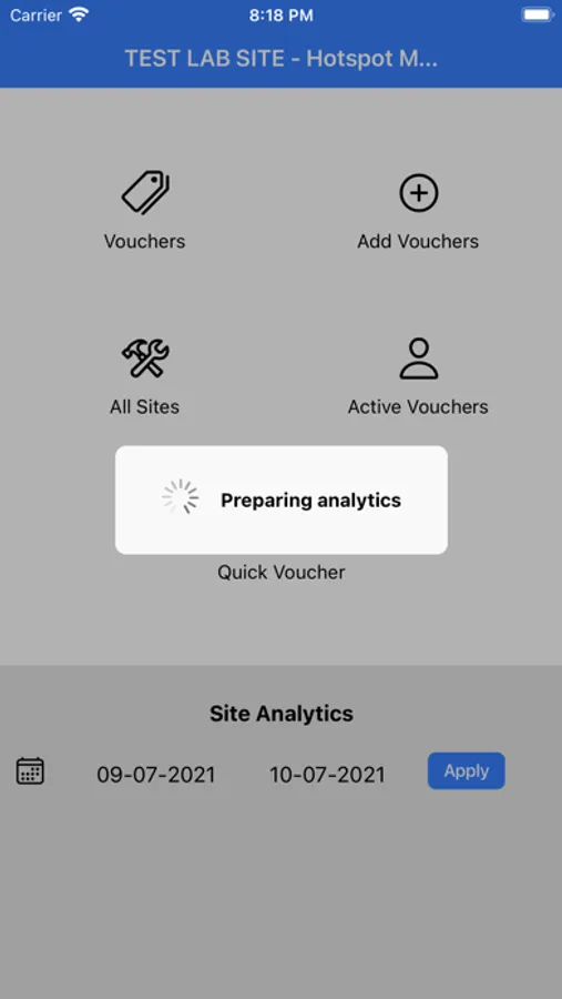 You can also view selected site analytics with starting/ending date to see overview in graph. It will show how may vouchers activated by which date and total number of active vouchers in selected dates.