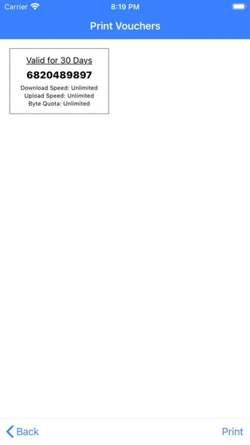 Print voucher option is provided in app to print one/bulk vouchers instantly through your iPhone/iPad to any printer connected with your device via wifi/bluetooth.