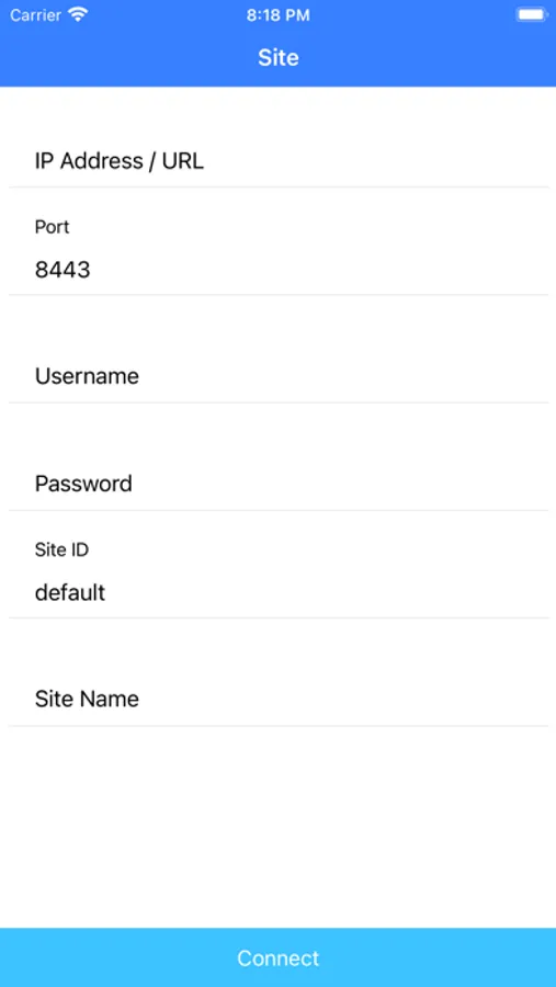 When you add new site in app, your it will provide flexibility to enter your custom credentials/port/siteID and site name you decide along with controller ip address or domain name.