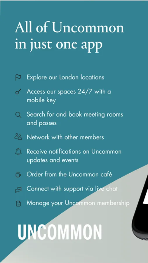 • Access your Uncommon digital key for easy entry to the building; open doors to offices and meeting rooms you booked