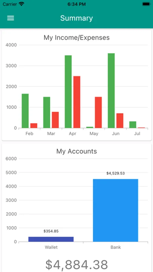 With SimpleMoney you can obtain statistics and easily visualize all your income and expenses over time.