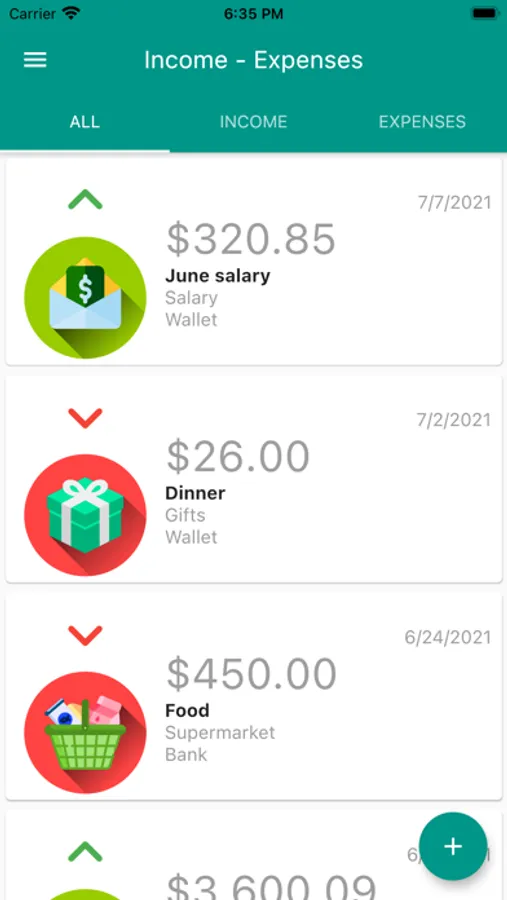 Order the income and expenses that you have entered into the application. You can see the category and origin of each transaction.