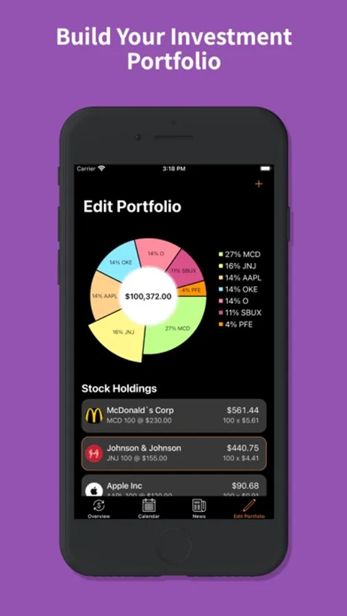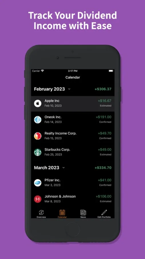 - Dividend payment calendar. Synchronization with the iOS calendar.