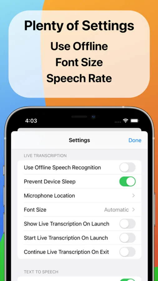 • Option to start the transcription on app launch, or continue the transcription on app close.