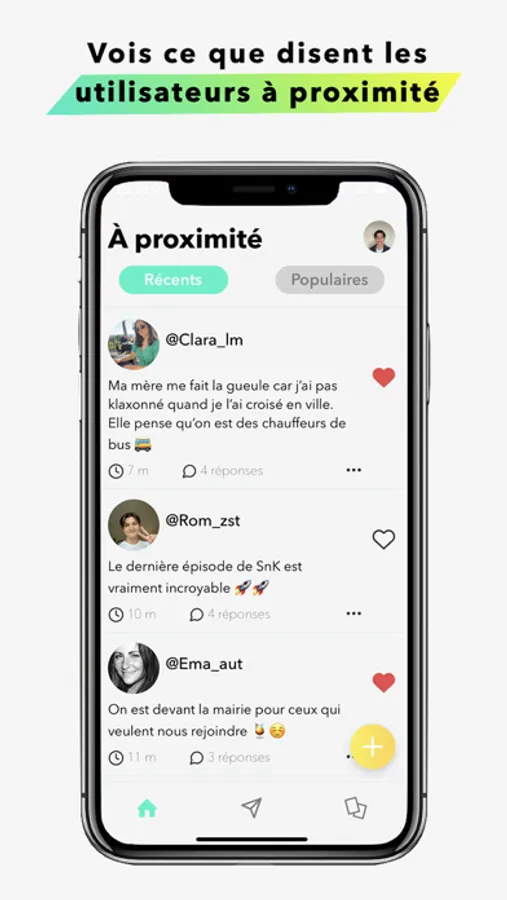 MESSAGES PUBLIQUES : Vois des messages publiques publiés par d’autres utilisateurs qui ont les mêmes goûts et passions que toi. Tu peux commenter et liker. Découvre une nouvelle façon pour échanger avec des utilisateurs qui te correspondent et ne rien rater d’intéressant.