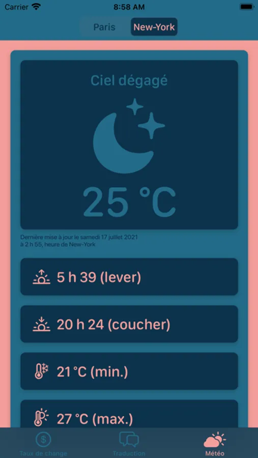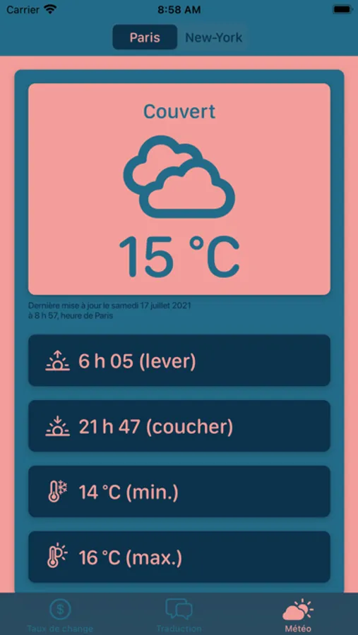 - pour connaître le temps qu’il fait à New-York et à Paris.