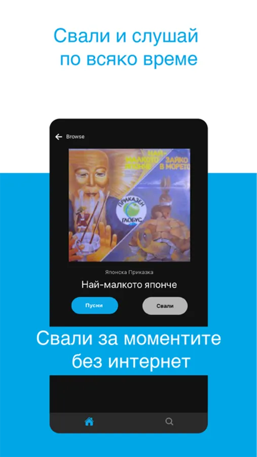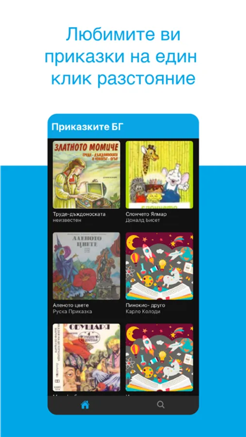 Приказките БГ съдържа приказки за слушане за големи и малки на български език. Приложението използва приказките от свободното интернет пространство и не съдържа в себе си нито един запис. Всичко се стриймва директно от интернет. Може да се свлалят на телефона и да се слушат. Има и търсачка за намиране на любимите ви приказки.