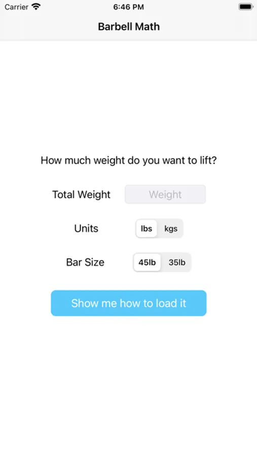 Barbell math is hard for everyone. Stop puzzling over whether you've loaded the correct number of plates onto the bar. Just enter the weight you want to lift (in kilos or pounds) and get a breakdown of how many of each kind of weight plate you'll need.