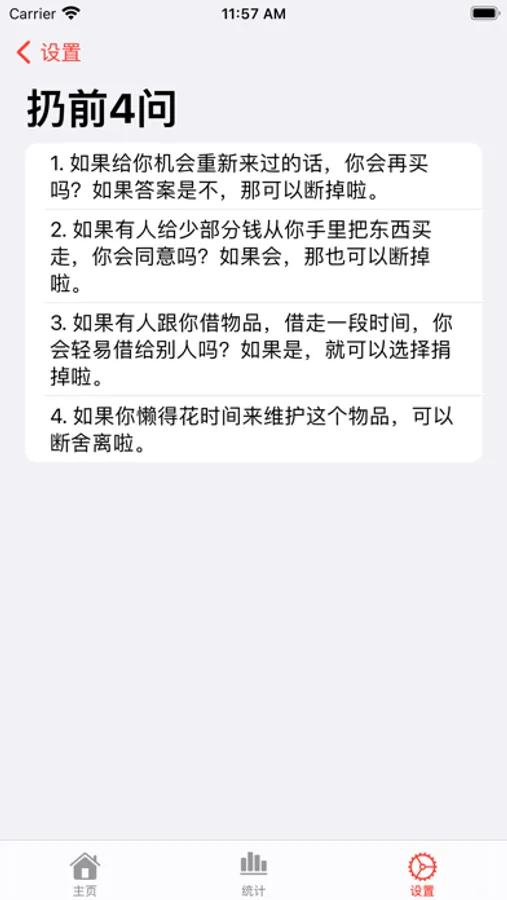 断舍离的概念并不仅仅是物质上的扔扔扔,但是本app,还是希望能够见微知著,从整理物品这件小事上,不断增进培养理念。