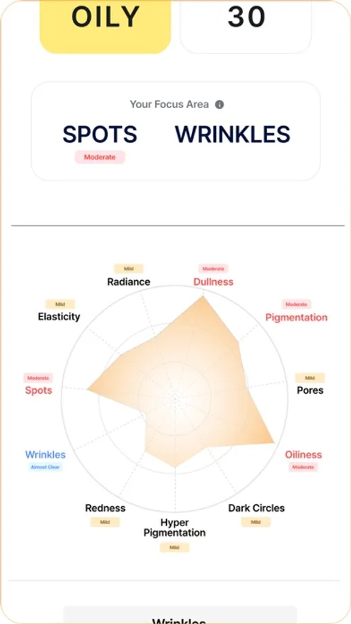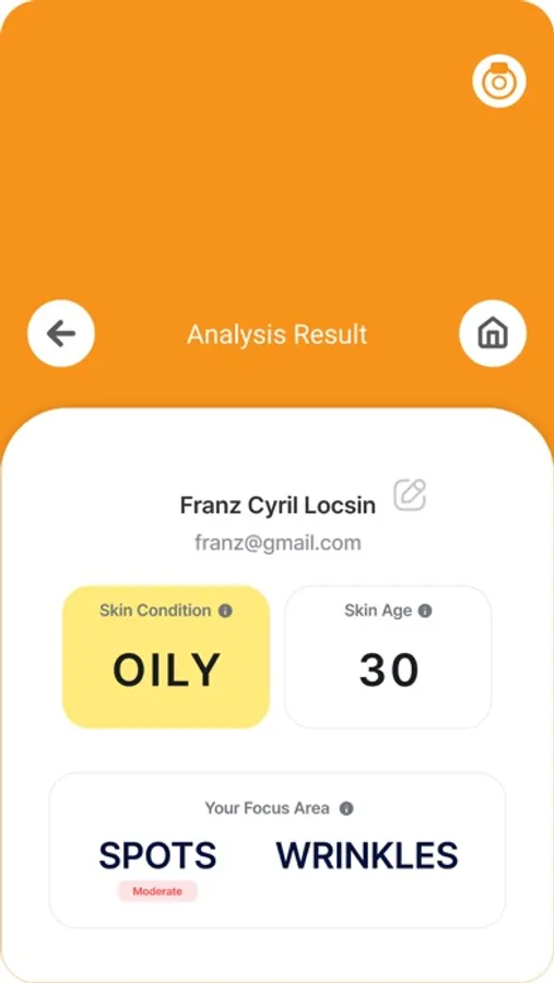 Our easy-to-use APP allows a user to take three facial images from different angles with the help of an audio guide for proper image capturing. Text guidelines are also available to help users navigate through the app smoothly. Captured images are processed by our AI and algorithm, and results are shown in simple graphs and wordings for easy understanding.