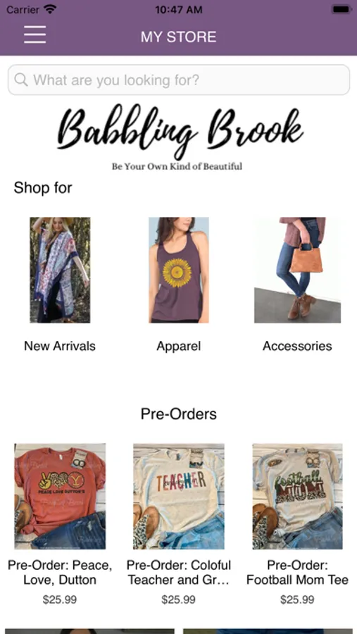 My name is Kelli and I am the founder of Babbling Brook. I am a plus size girl who became frustrated with the lack of clothing available out there that did not look frumpy. So what does this girl do you ask? Why I started my own company in 2015 out of my home! My ultimate goal is to provide unique, trendy apparel and accessories with fantastic quality at affordable prices for every shape and size. At Babbling Brook - we are more about style, comfort, and building women"s confidence than name brands on a tag.