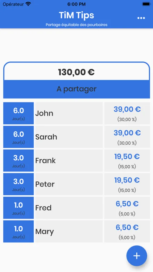 Grâce à cet outil vous allez pouvoir répartir les pourboires collectés avec vos collègues en fonction de la présence de chacun.