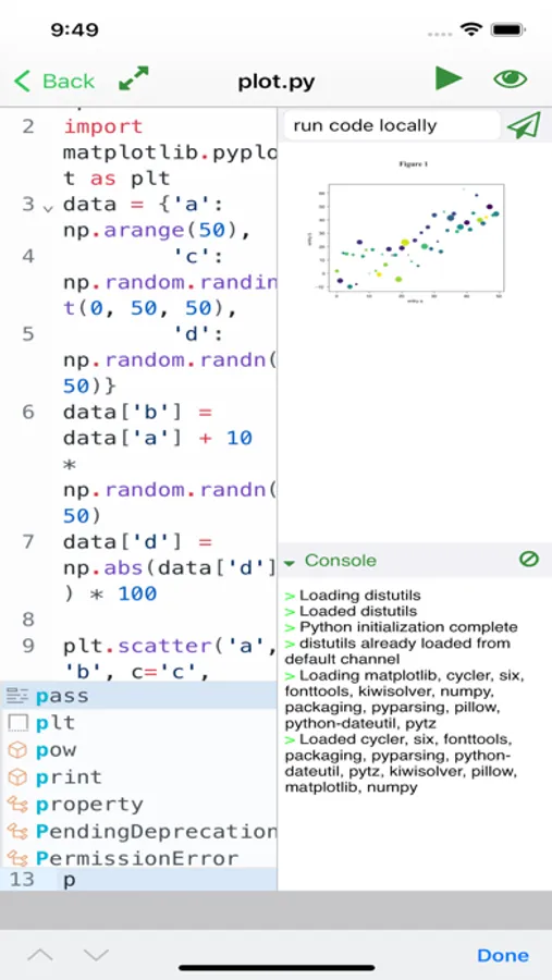 - auto-complete for Python, javascript/Typescript, HTML;