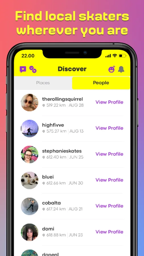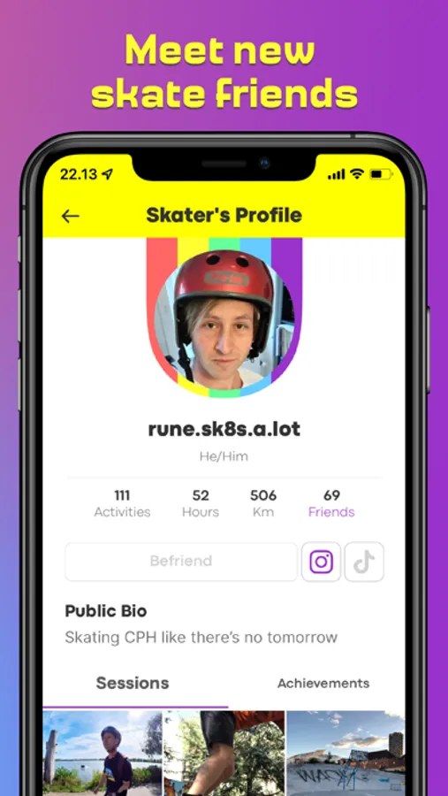 Using GPS data we connect you with roller skaters in your area. The Let’s Roll App shows you who is skating near you and lets you connect directly with local skaters. You can keep up with sessions and activities in your neighborhood - or bring the app with you when you travel to meet up with skaters in new places.