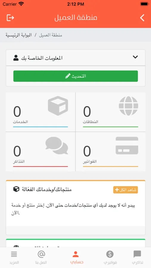 تطبيق منطقة عملاء مؤسسة الرياض لتصميم المواقع وتطبيقات الجوال ، يساعد المستخدمين على الوصول لحساباتهم ومتابعة اعمالهم بسهولة .