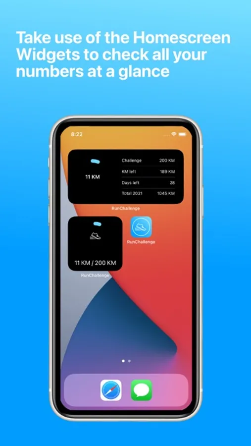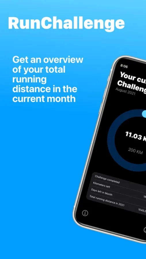RunChallenge gives you an overview of your entire distance of your running workouts within the actual month. Every running workout which is stored in Apple Health counts. So it doesn't matter which App oder Device (iPhone, Apple Watch) your are using to track your runs.