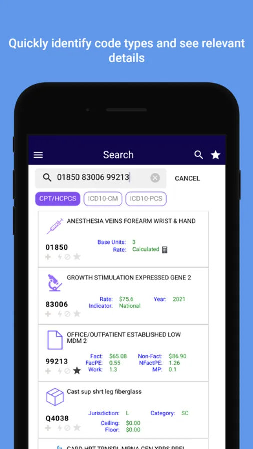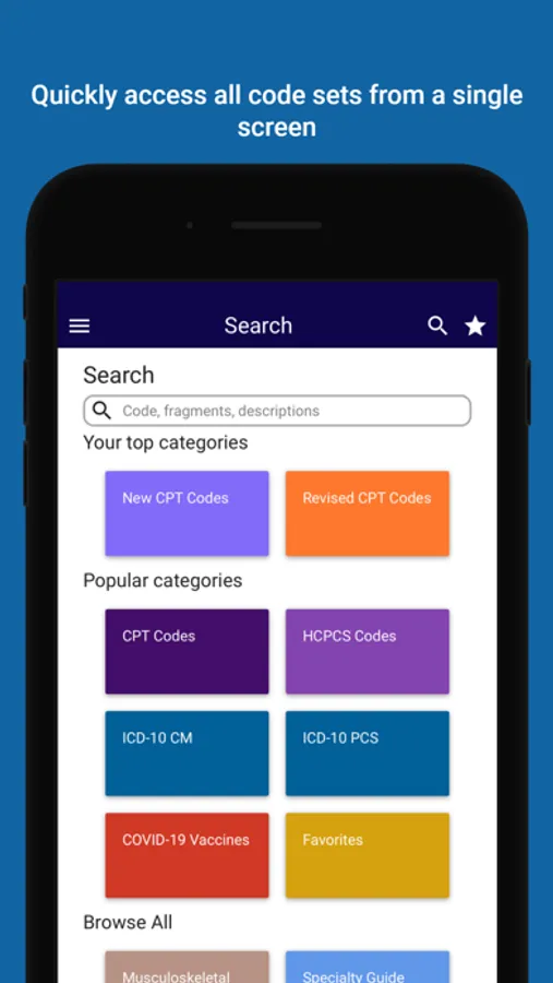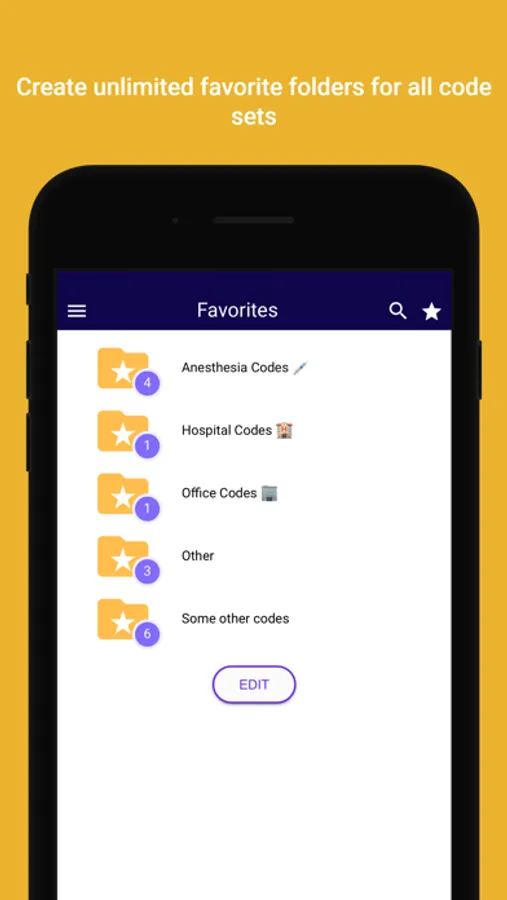 Find and organize an unlimited list of your favorite codes with as many folders as needed. Save time by creating folders for procedures and diagnostics for every scenario you encounter.